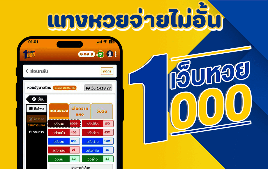 แทงหวยออนไลน์ ฝากถอนไม่มีขั้นต่ำ จ่าย 1 บาท ลุ้นรับ 1,000 เว็บตรง เว็บดัง